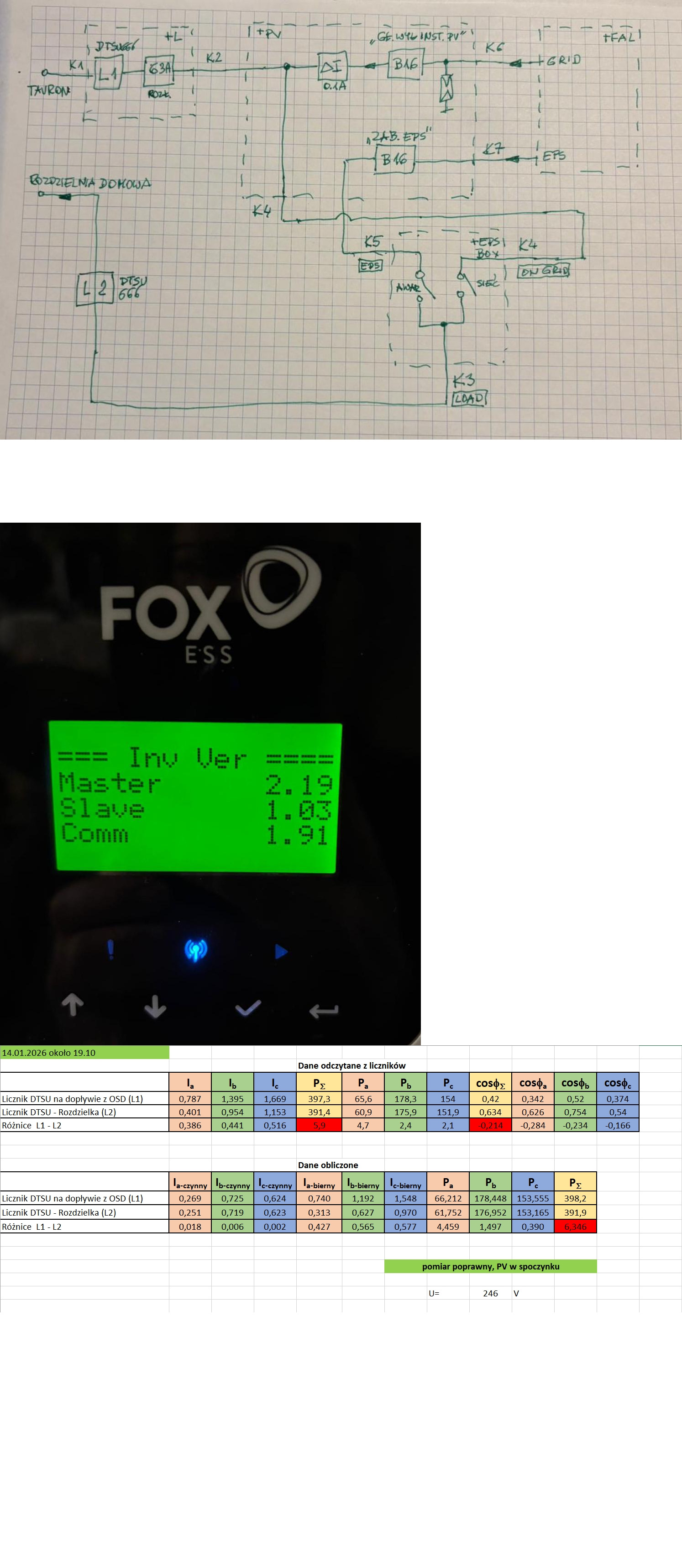 - Dodam jeszcze, że po całkowitym wyłączeniu instalacji PV wskazania obu liczników L1 i L2 są zgodne w zakresie ich klasy pomiarowe, dla wszystkich wyświetlanych parametrów.